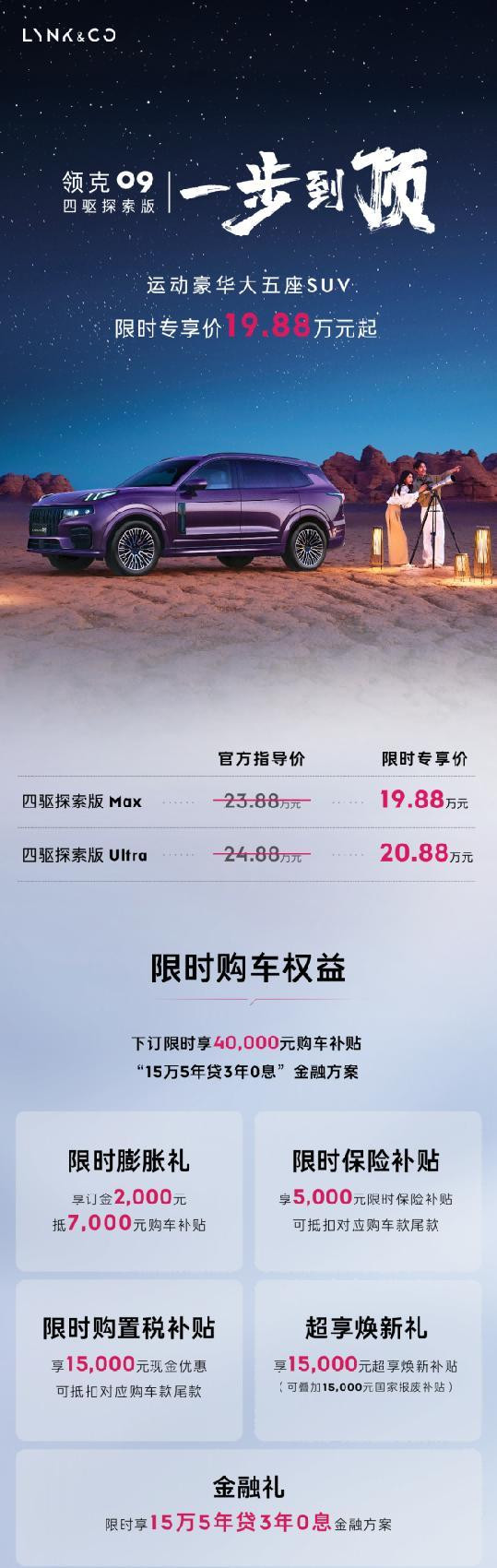 在当下竞争激烈的汽车市场,消费者常常面临抉择:是追求燃油车的机械质感,还是拥抱新势力的智能舒适?2026款领克09四驱探索版的上市,为这道选择题提供了全新答案。新车以SPA架构为基石,推出Max与Ultra两款配置,限时专属价分别为19.88万元与20.88万元正规炒股配资网,旨在以全面实力打破级别界限,重新定义30万元内中大型SUV的价值标准。