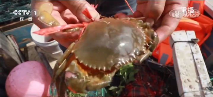 眼下,福建连江的红鲟已经膏满肉肥,开始捕捞上市。渔民们驾着小船来到海上养殖区,拽起放置在渔排旁边的蟹笼,将一个个重达半斤以上的红鲟抓出,然后用红绳子绑住两个大脚,放入筐中,准备出售。