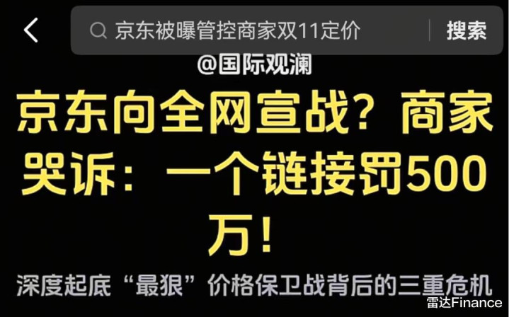 京东向全网宣战?商家哭诉:一个链接罚500万;京东慌了?今年双11把二选一玩出了新套路;京东急眼了!下令要求商家“不准提比我家便宜”……近日,抖音出现了大量关于京东双11政策的视频,“双11京东被吐槽二选一玩出新高度”成为抖音热门话题。